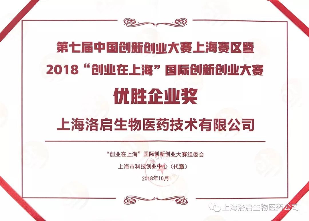 【喜讯】凯发K8天生赢家一触即发生物荣获2018“创业在上海”国际创新创业大赛优胜奖
