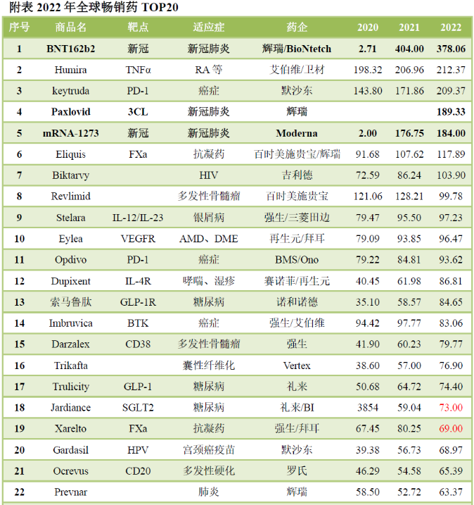 2022年全球畅销药TOP20中,有8款是大分子药物,剔除新冠相关则比例会更高,最畅销的两款药物Humira、Keytruda都是抗体药物。
